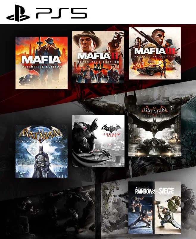 7 JUEGOS EN 1 Mafia Trilogy mas Batman Arkham Collection mas TOM CLANCYS RAINBOW SIX SIEGE PS5